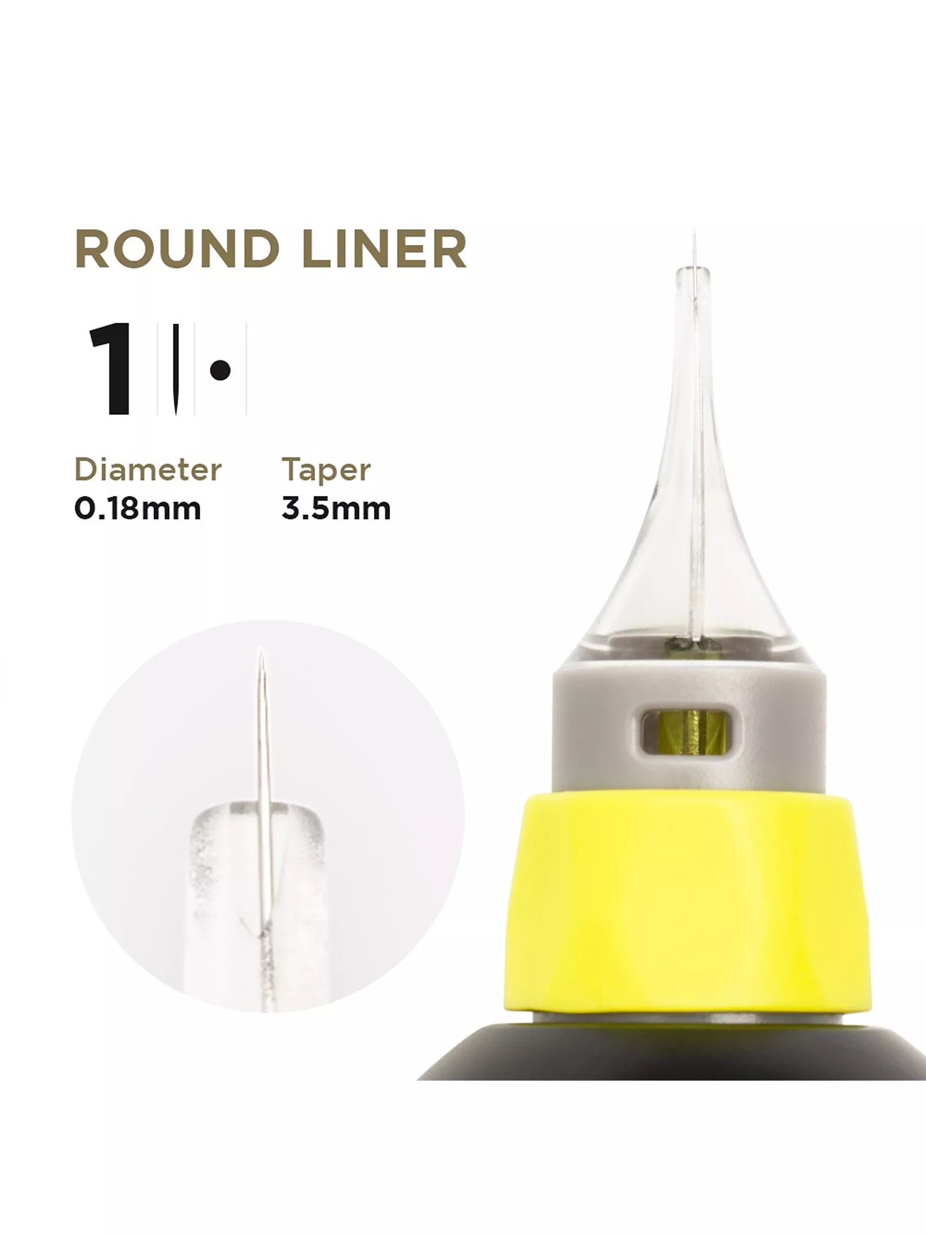 1R Tip: Ideal for ultra-fine details in both tattoos and PMU. Offers precision that's perfect for intricate designs, hair strokes, and detailed eyeliner in PMU treatments.