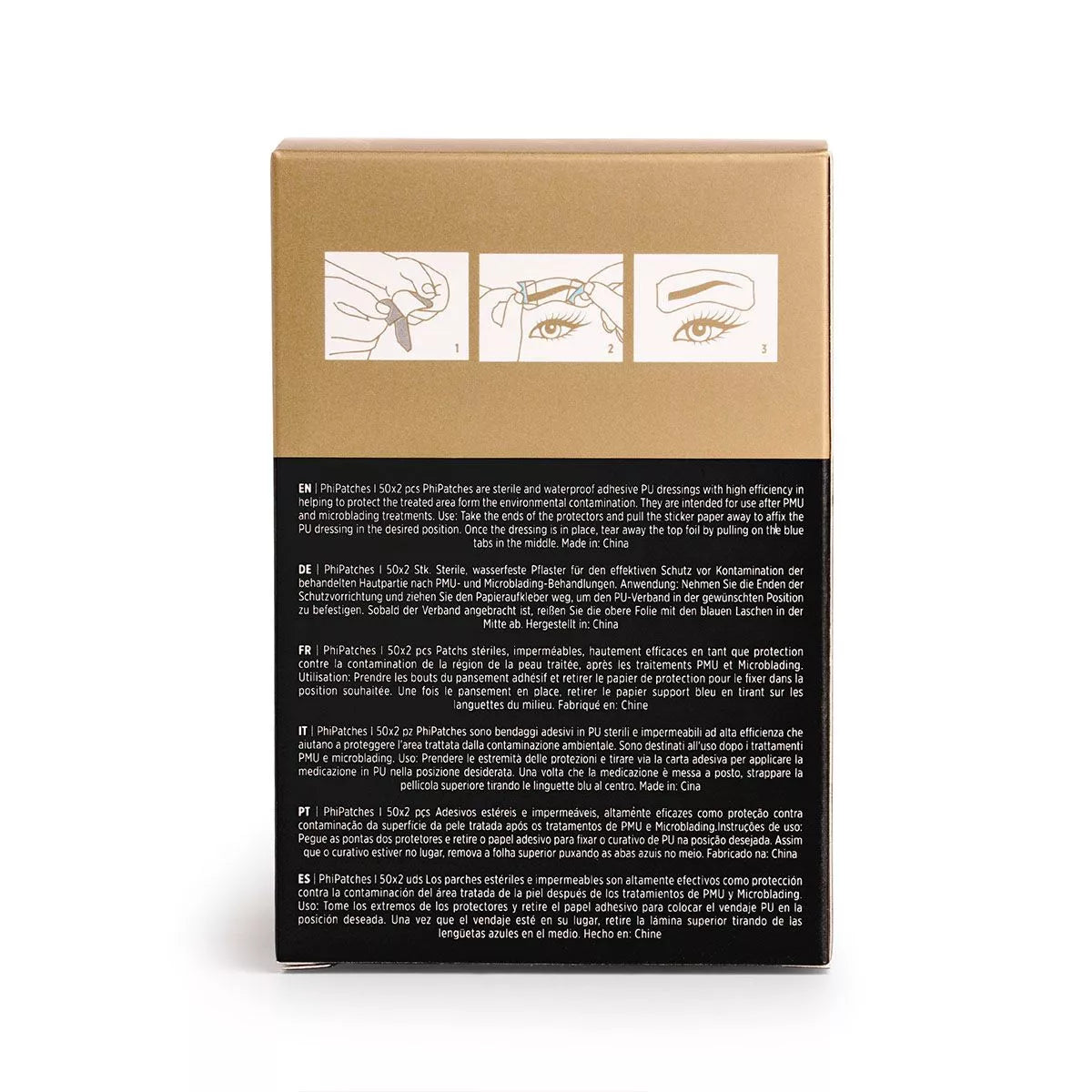 It is sterile and waterproof and is applied to the eyebrows the first few days after the treatment, especially before sleeping. PhiPatch not only protects against external harmful influences, but also against friction and contact with other materials.