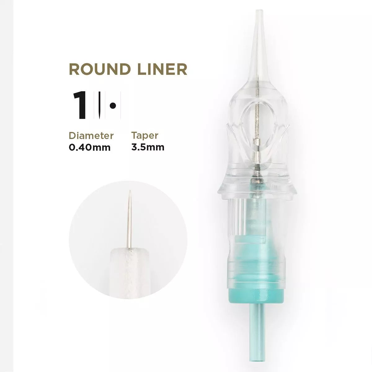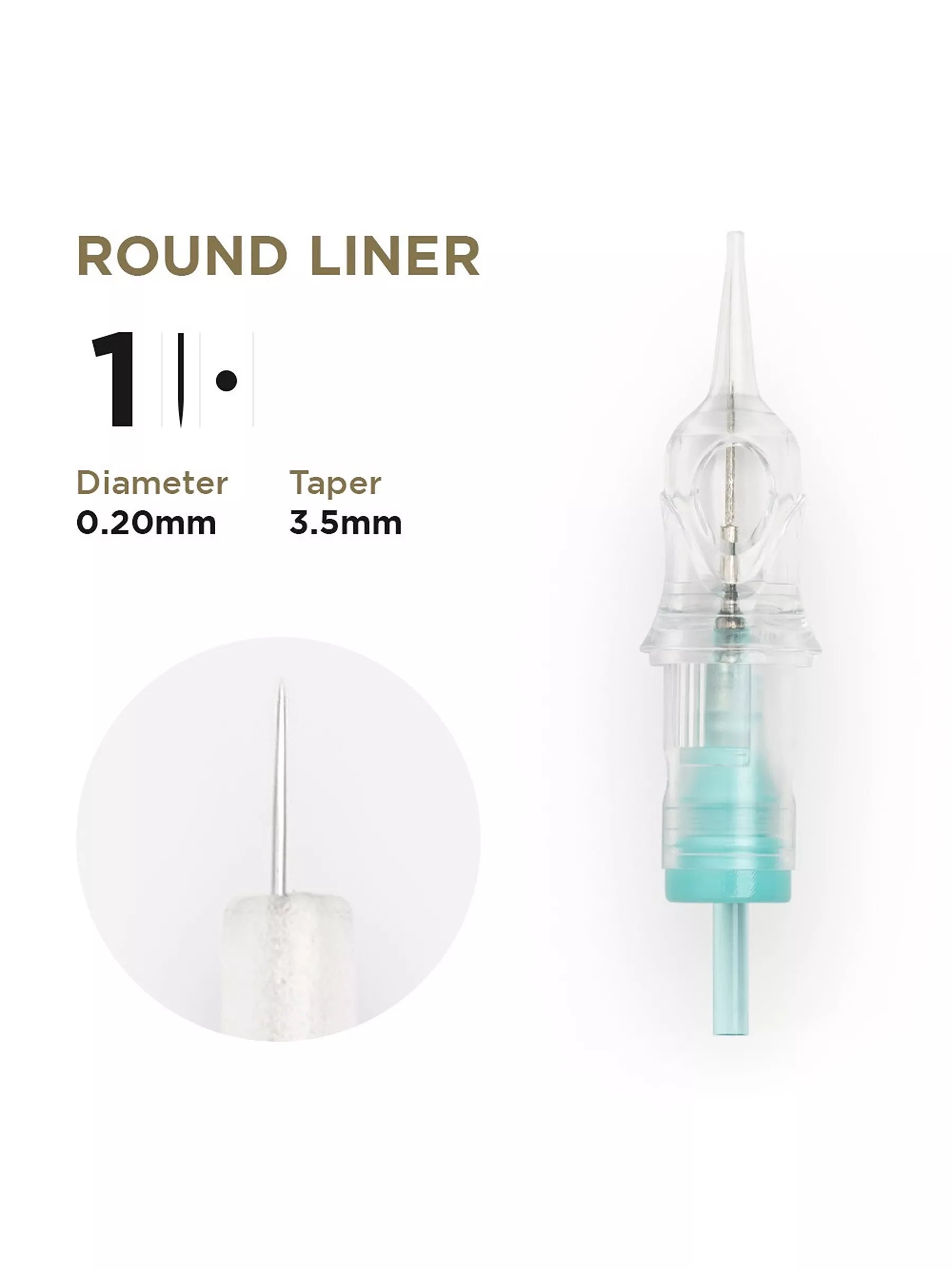 1R Tip: Ideal for ultra-fine details in both tattoos and PMU. Offers precision that's perfect for intricate designs, hair strokes, and detailed eyeliner in PMU treatments.